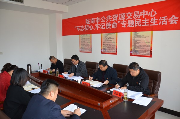 為了開好此次專題民主生活會,中心黨組做了扎實有效的會前準備工作,制定了《中共隴南市公共資源交易中心黨組關于“不忘初心、牢記使命”專題民主生活會方案》,開展了會前規(guī)定篇目的政治理論學習和談心談話,征求了意見建議,班子和班子成員認真撰寫對照檢查材料,切實為開好本次專題民主生活會打下了堅實基礎。
