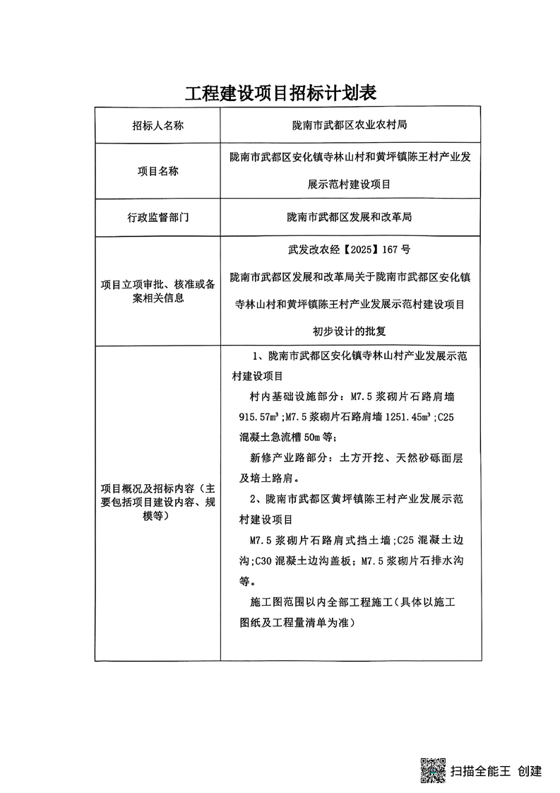 隴南市武都區(qū)安化鎮(zhèn)寺林山村和黃坪鎮(zhèn)陳王村產(chǎn)業(yè)發(fā)展示范村建設項目