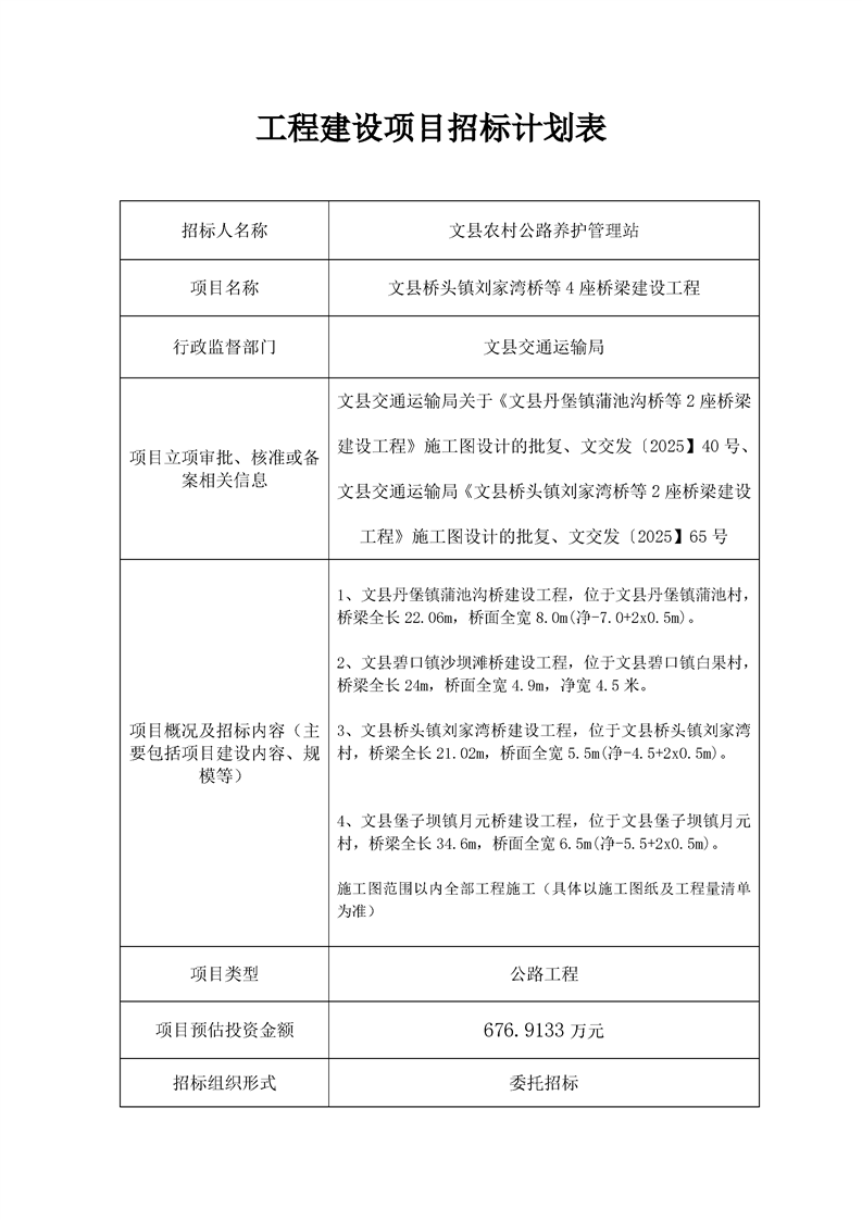 文縣橋頭鎮(zhèn)劉家灣橋等4座橋梁建設工程