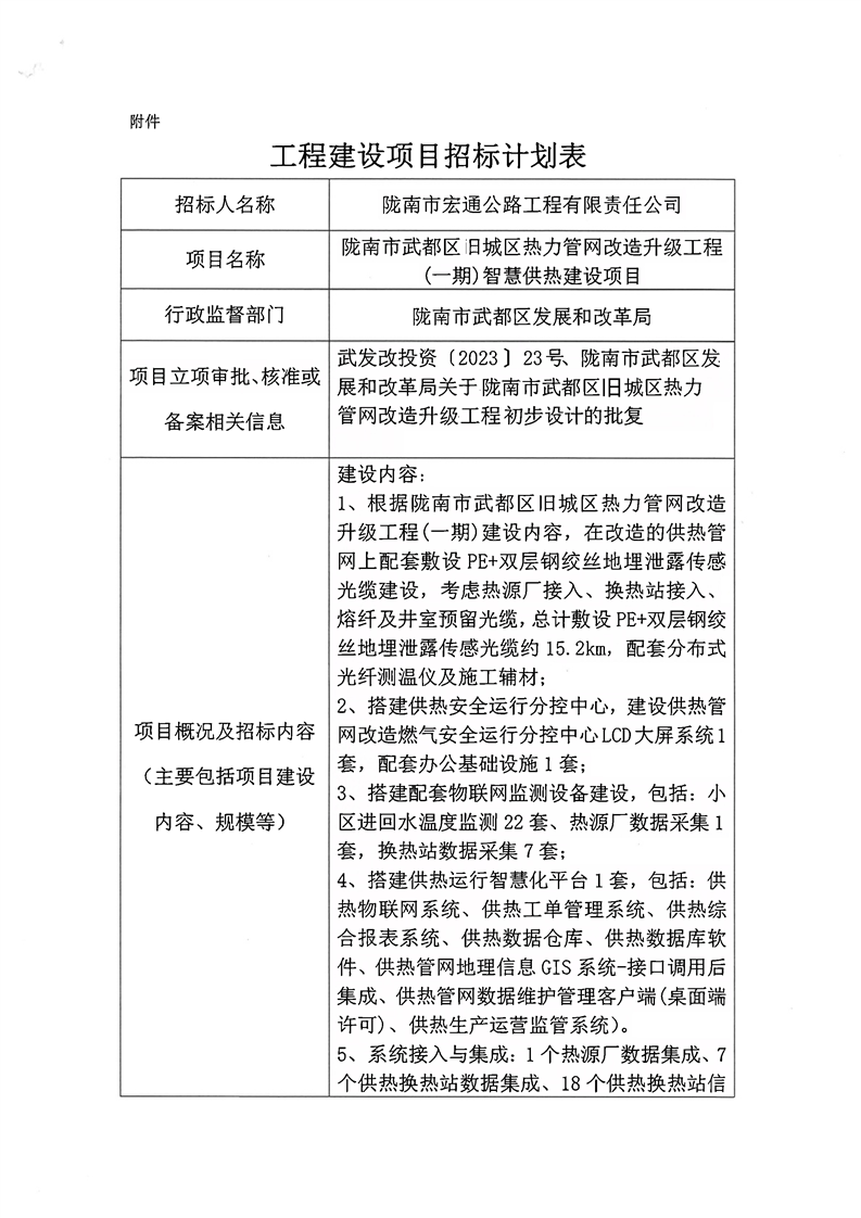 隴南市武都區(qū)舊城區(qū)熱力管網(wǎng)改造升級(jí)工程(一期)智慧供熱建設(shè)項(xiàng)目