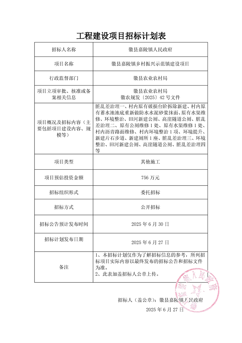 徽縣嘉陵鎮(zhèn)鄉(xiāng)村振興示范鎮(zhèn)建設(shè)項(xiàng)目