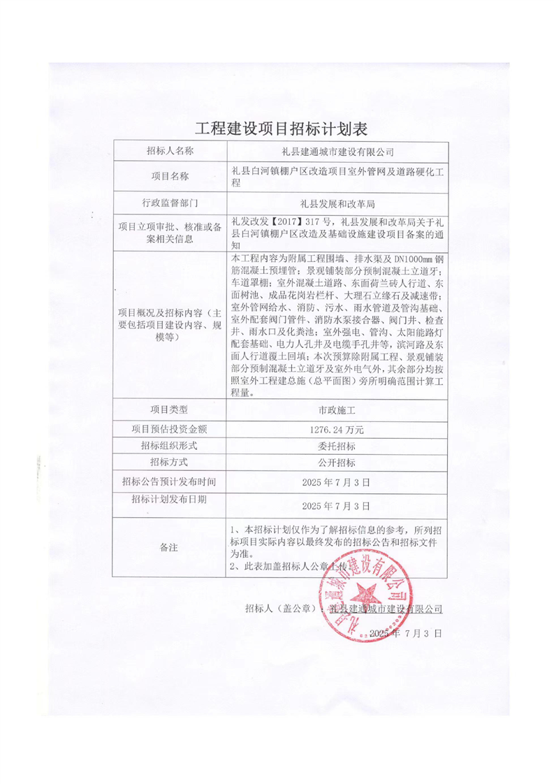 禮縣白河鎮(zhèn)棚戶區(qū)改造及基礎設施建設項目
