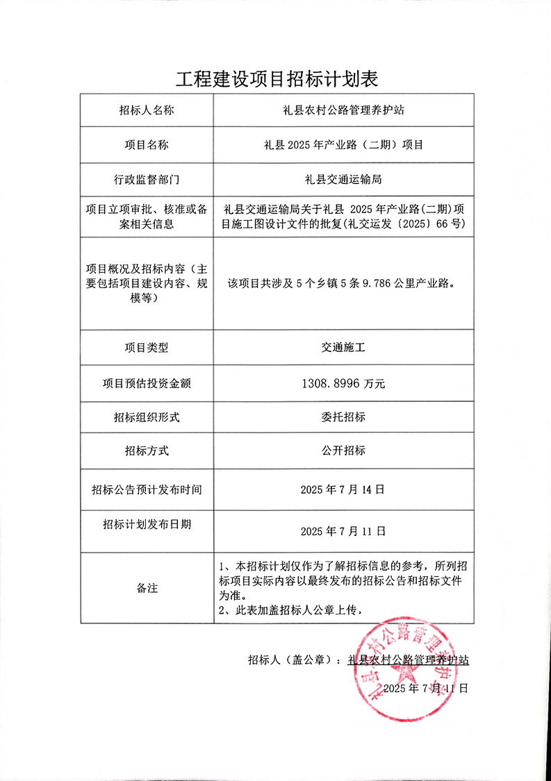 禮縣2025年產(chǎn)業(yè)路(二期)項(xiàng)目