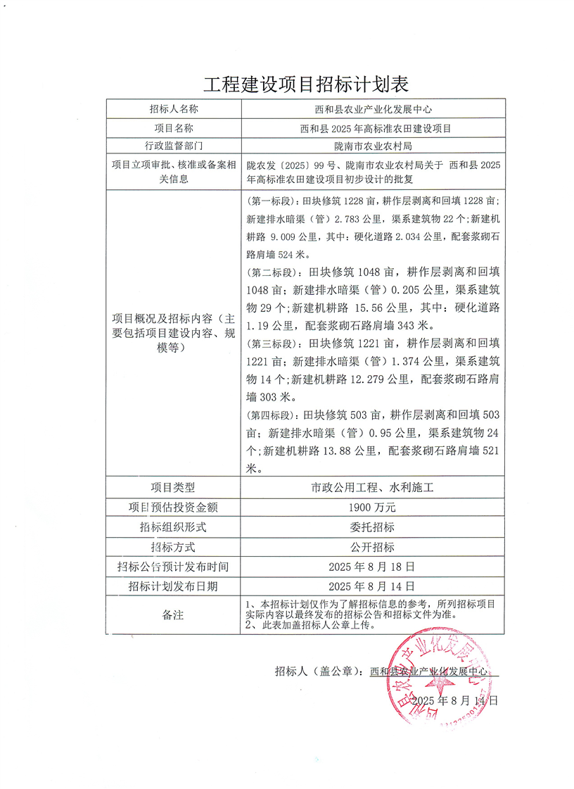 西和縣2025年高標(biāo)準(zhǔn)農(nóng)田建設(shè)項目