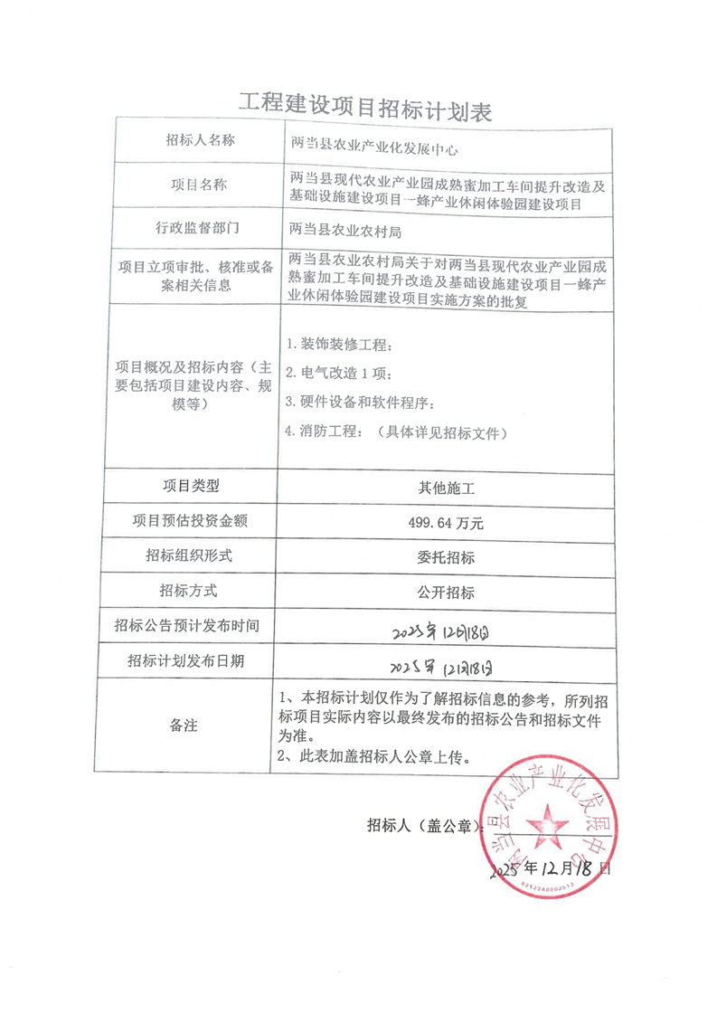 兩當(dāng)縣現(xiàn)代農(nóng)業(yè)產(chǎn)業(yè)園成熟蜜加工車間提升改造及基礎(chǔ)設(shè)施建設(shè)項(xiàng)目一蜂產(chǎn)業(yè)休閑體驗(yàn)園建設(shè)項(xiàng)目